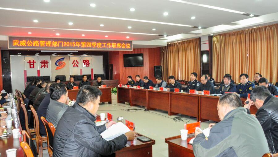 为了切实做好冬季恶劣天气保通保畅和突发事件应急处置工作,12月17日,武威公路管理局组织召开了武威公路管理部门2015年第四季度工作联席会议,武威市交通运输局、武威路政执法管理处、武威高速公路管理处、武威市公安局交警支队、省交警总队高速公路二支队等单位参加了会议。